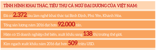Theo Tổng cục Thủy sản (Bộ NNPTNT), sau thời gian triển khai đề án tại 3 tỉnh Bình Định, Phú Yên và Khánh Hòa, các chủng loại sản phẩm CNĐD đã bắt đầu đa dạng, gồm CNĐD đông lạnh nguyên con, chế biến đông lạnh, hấp chín đông lạnh, đồ hộp,… Kim ngạch xuất khẩu cá ngừ của Việt Nam năm 2016 đạt hơn 509 triệu USD.