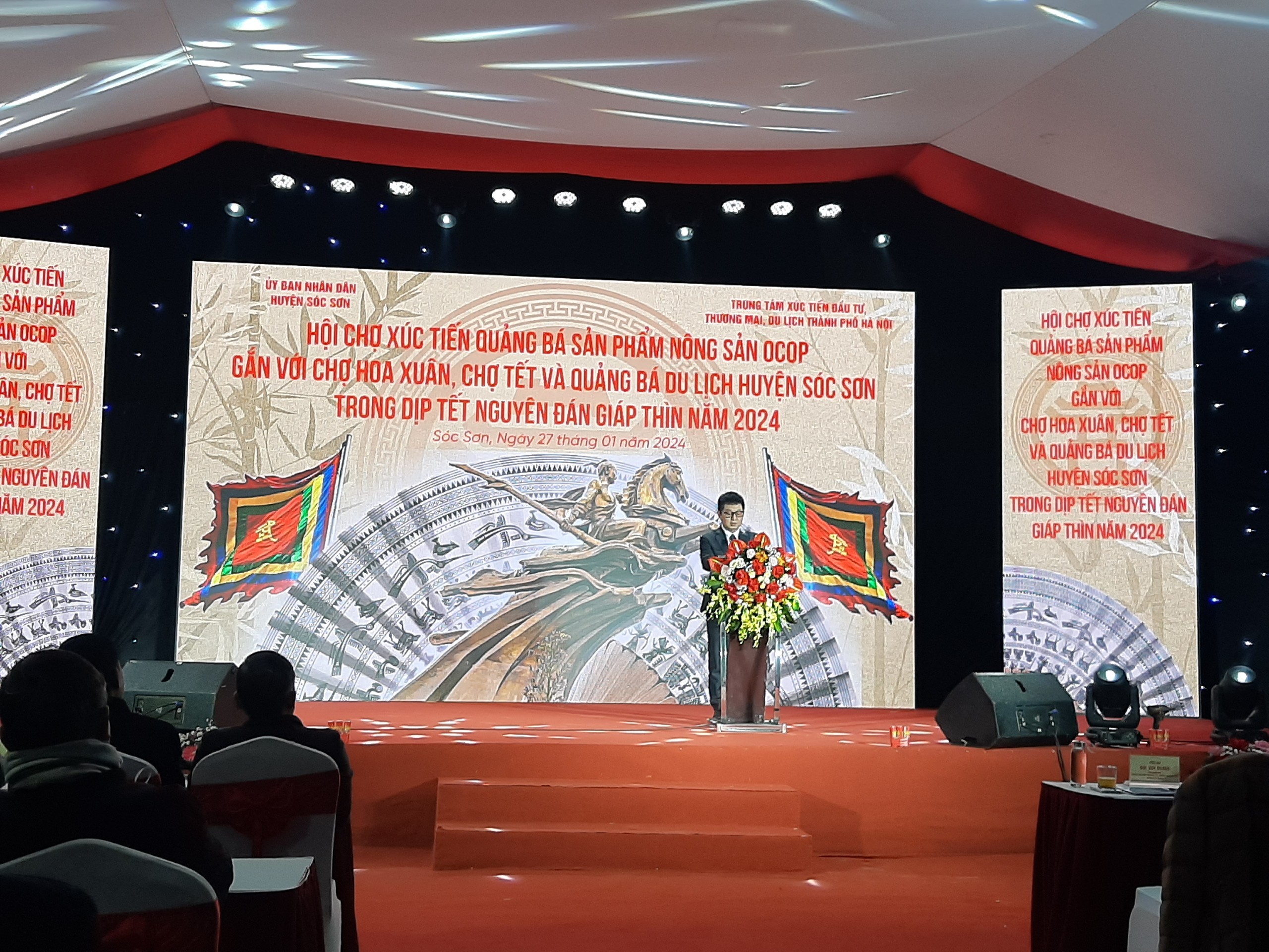 Phát biểu tại sự kiện, ông Bùi Duy Quang, Phó Giám đốc Trung tâm Xúc tiến Đầu tư, Thương mại, Du lịch TP. Hà Nội cho biết: Sóc Sơn là vùng đất có bề dày lịch sử, lưu giữ nhiều di tích văn hóa gắn với các lễ hội truyền thống. Với thế mạnh được thiên nhiên ưu đãi cùng sự đa dạng về văn hóa bản sắc riêng biệt vùng miền, huyện Sóc Sơn được quy hoạch trở thành một trong những trọng điểm du lịch thu hút khách đến từ Thủ đô và các tỉnh lân cận với những danh lam thắng cảnh nổi tiếng như: Núi Sóc, núi Đôi, hồ Đồng Quan, hồ Đồng Đò…